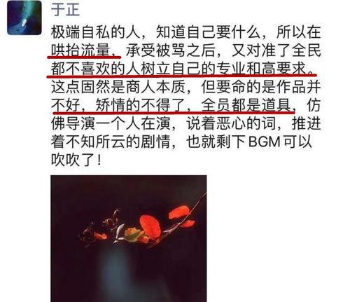 这位圈内人朋友在视频中透露,郭敬明在娱乐圈的人缘其实并不好,很多人都在背后议论他。他爆料说,郭敬明曾经因为一部电影的投资问题,和一位知名导演闹得不可开交。而且,他还说郭敬明在片场对演员的态度非常苛刻,甚至有次因为一个小细节,就当众批评了一个演员。
